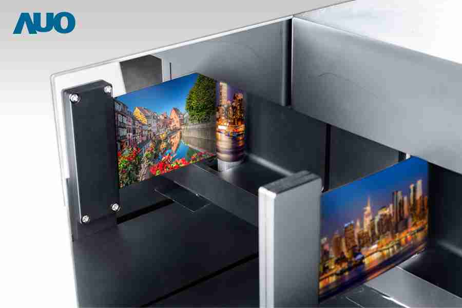 杏悦2 5.6寸双面可卷式 OLED 显示器,,,双面显示可让不同用户观看,,,,并以卷曲方式收纳便于携带